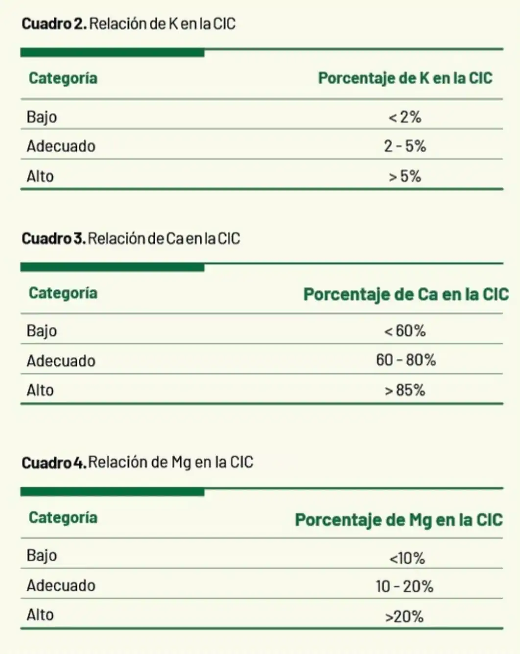 Table 2. K ratio in CEC – Table 3. Ca ratio in CEC – Table 4. Mg ratio in CEC