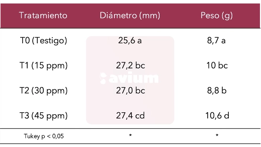 These studies showed improvements in soluble solids, dry matter and firmness (Durofel), and especially in fruit size, with parameters positively influenced by exogenous GA₃ applications (Tapia, 2015).