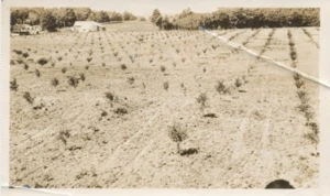 Image 5. Newly planted trees in the Fardig orchard in Ephraim, Wisconsin, around 1930. Photo courtesy of the Ephraim Historical Foundation.