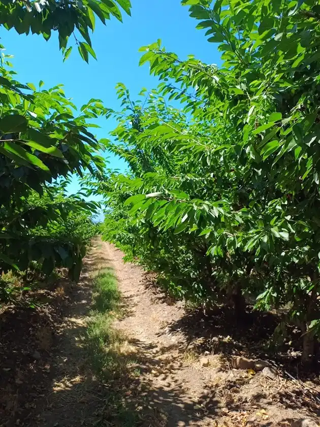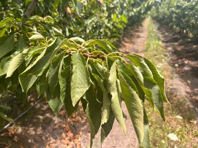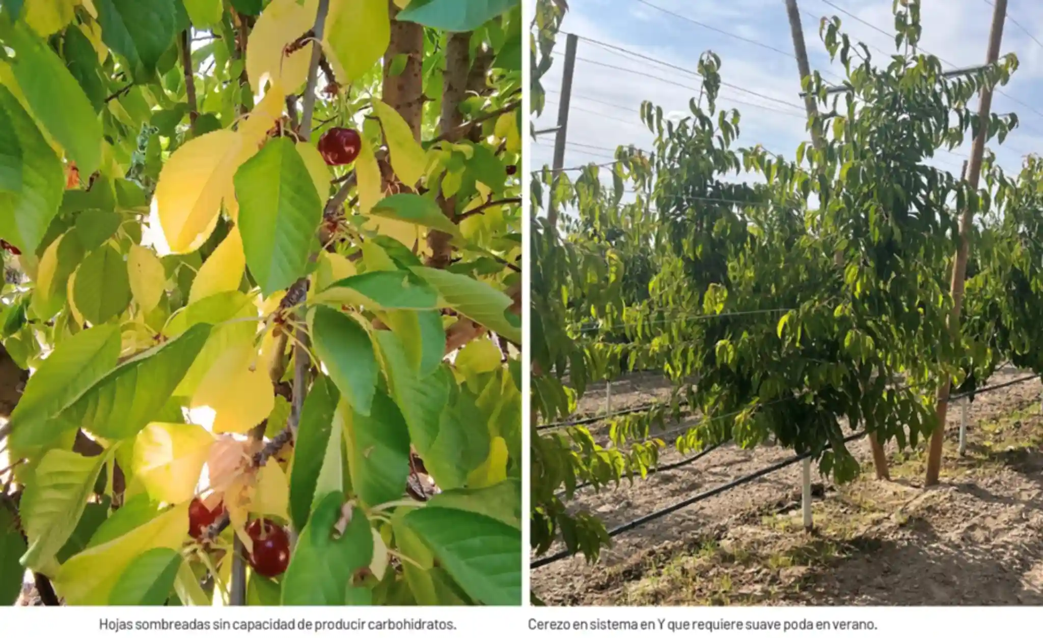 Cherry tree with abundant vegetative growth after harvest, with potential shading