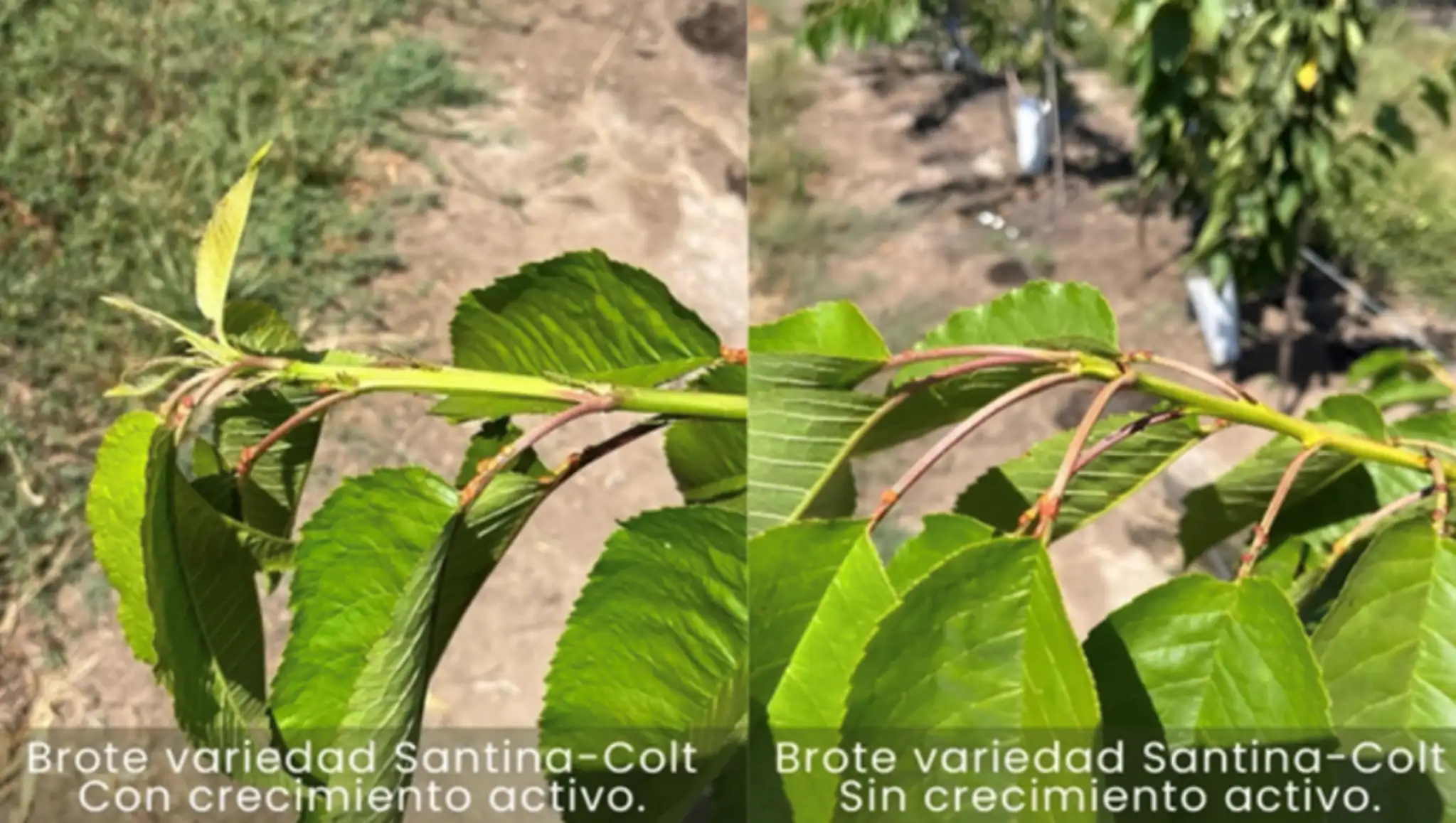 Immagine 2. Germogli di ciliegio in accrescimento attivo, a sinistra, e germogli di ciliegio con crescita vegetativa terminata, a destra.