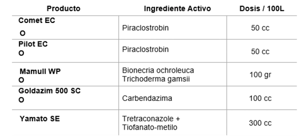 Per controllare i funghi che causano la decomposizione delle foglie e del legno, applicare un fungicida ad ampio spettro nelle prime fasi post-raccolta. Utilizzare uno dei seguenti prodotti.