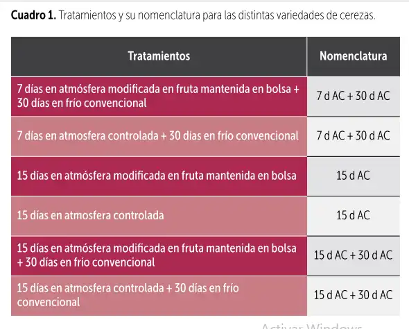 Come primo approccio all’utilizzo di questa tecnologia sulle ciliegie e per rispondere, almeno in parte, alle preoccupazioni relative agli effetti sulla frutta, il Centro di Pomacee, attraverso l’Unità di Post-raccolta e l’Unità del Ciliegio, ha sviluppato una ricerca con l’obiettivo di determinare l’effetto dell’atmosfera controllata sulla consistenza della polpa, sui solidi solubili, sull’acidità titolabile (già pubblicati in precedenza) e sulle alterazioni di post-raccolta nelle ciliegie delle cultivar Lapins, Regina, Sentennial, Staccato e Sweetheart.