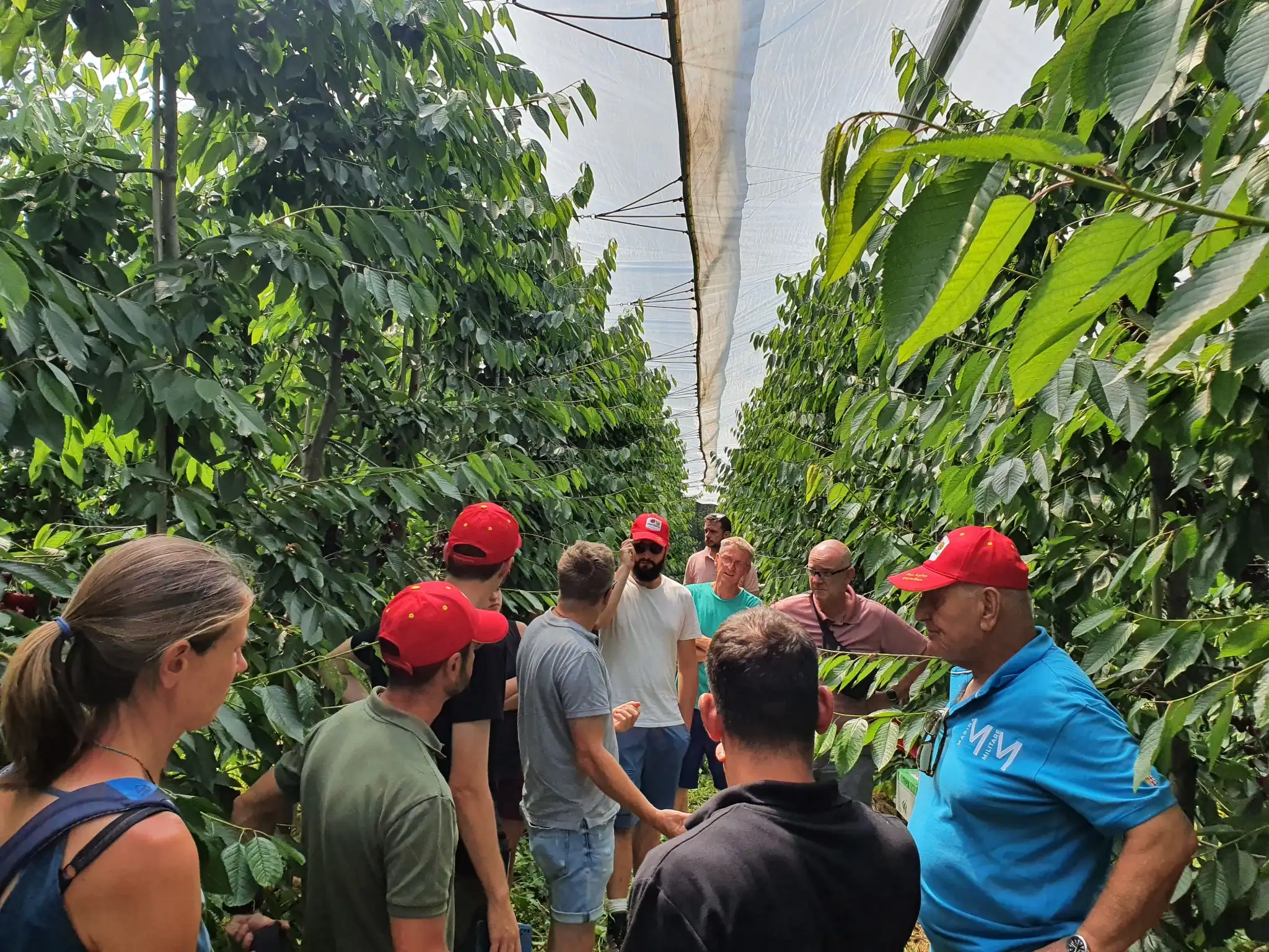 Immagine 2. La ricerca e sperimentazione sui moderni sistemi di impianto del ciliegio sviluppati in Trentino Alto Adige richiama l’interesse di tecnici e professionisti della filiera. Fonte: SL Fruit Service