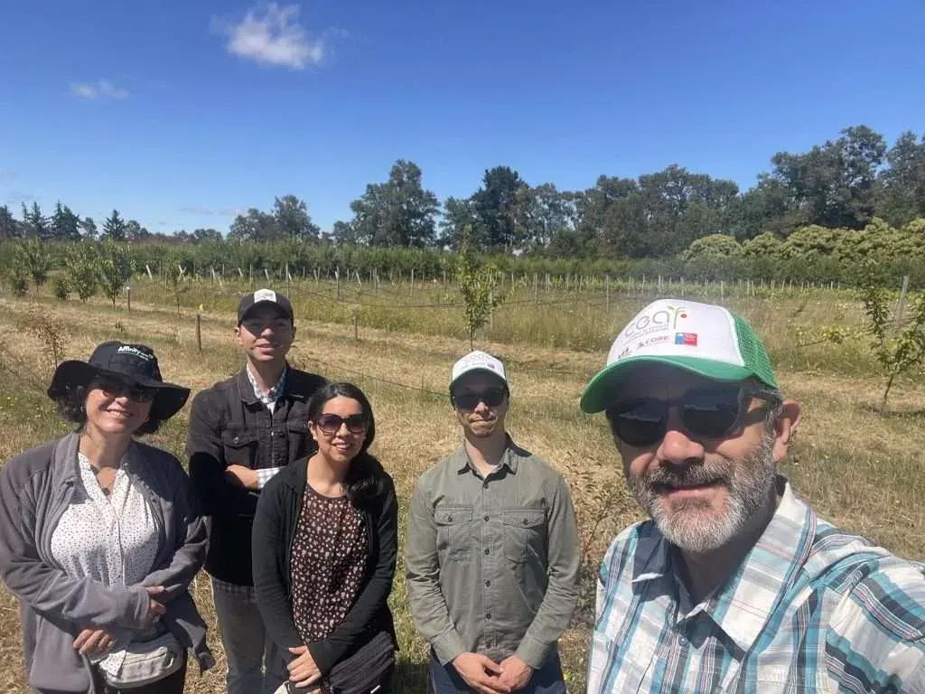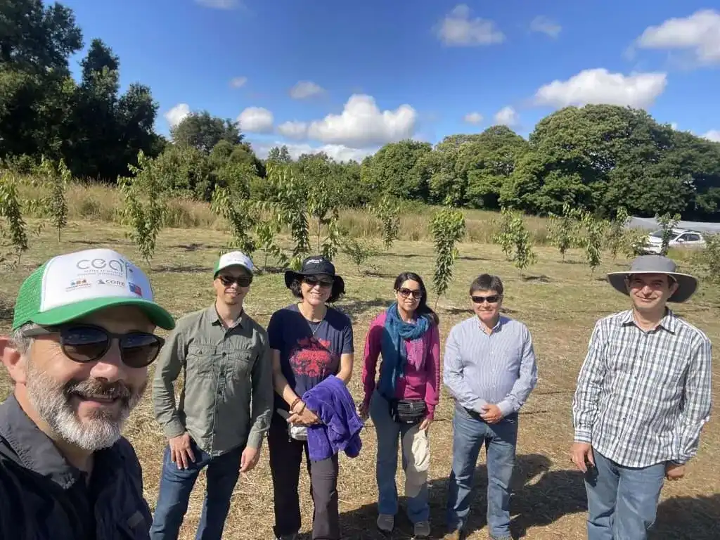 Durante le visite tecniche effettuate a dicembre 2025, i ricercatori del CEAF, i dottori Mauricio Ortiz e Ismael Opazo, insieme al team del Centro Fruticultura Sur, composto da Claudia Jorquera e Alejandra Vinagre, hanno raccolto dati fondamentali su fenologia, vigoria, sopravvivenza e adattamento agronomico.