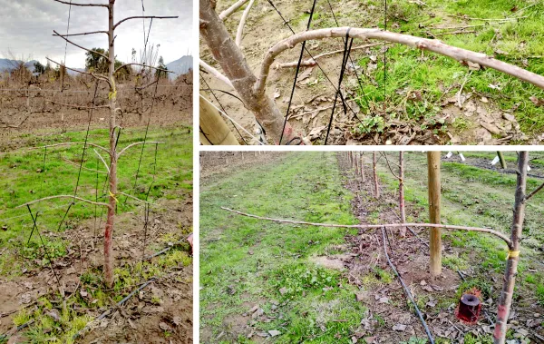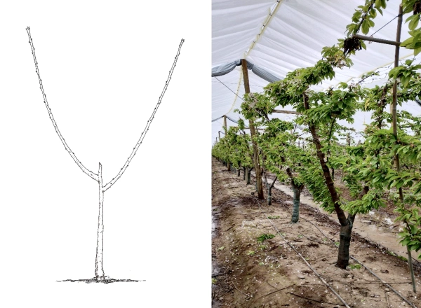 Figura 10. Giovani ciliegi allevati in sistema UFO, a formare una muraglia fruttifera