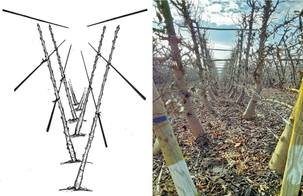 Le spalliere a V o Y migliorano efficienza e meccanizzazione, ma necessitano di strutture di sostegno e di una costante rinnovazione delle branche.