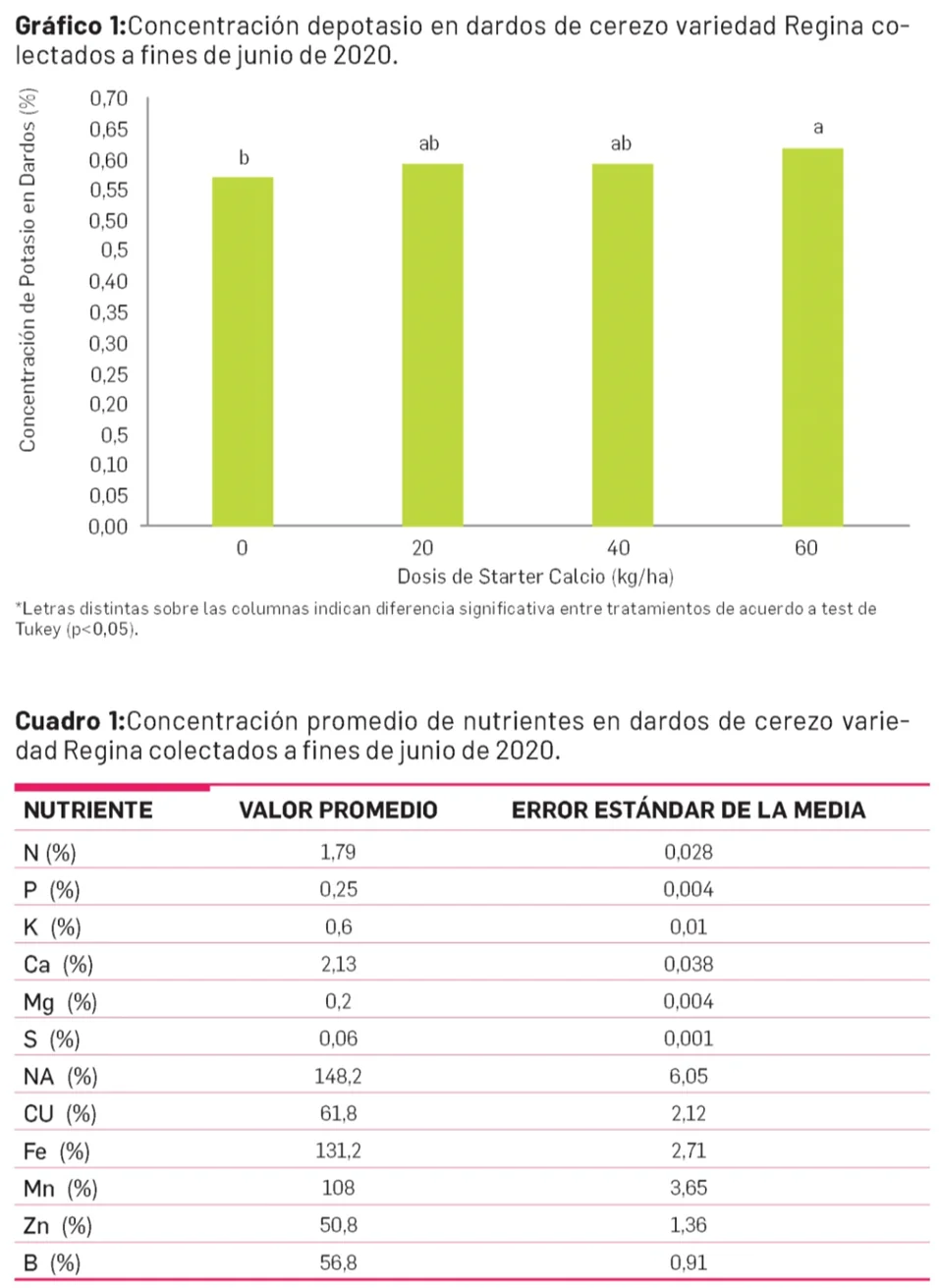 Analogamente, la concentrazione media del nutriente nei germogli di ciliegio è presentata nella Tabella 1.